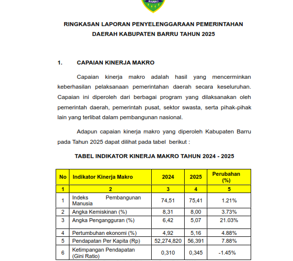 Home / DAERAHBARRURINGKASAN LAPORAN PENYELENGGARAAN PEMERINTAHAN DAERAH KABUPATEN BARRU TAHUN 2025BARRUMaret 16, 2026 - 3:18 pm Editor : REDAKSI RINGKASAN LAPORAN PENYELENGGARAAN PEMERINTAHAN DAERAH KABUPATEN BARRU TAHUN 2025 BarruPemkab Barru